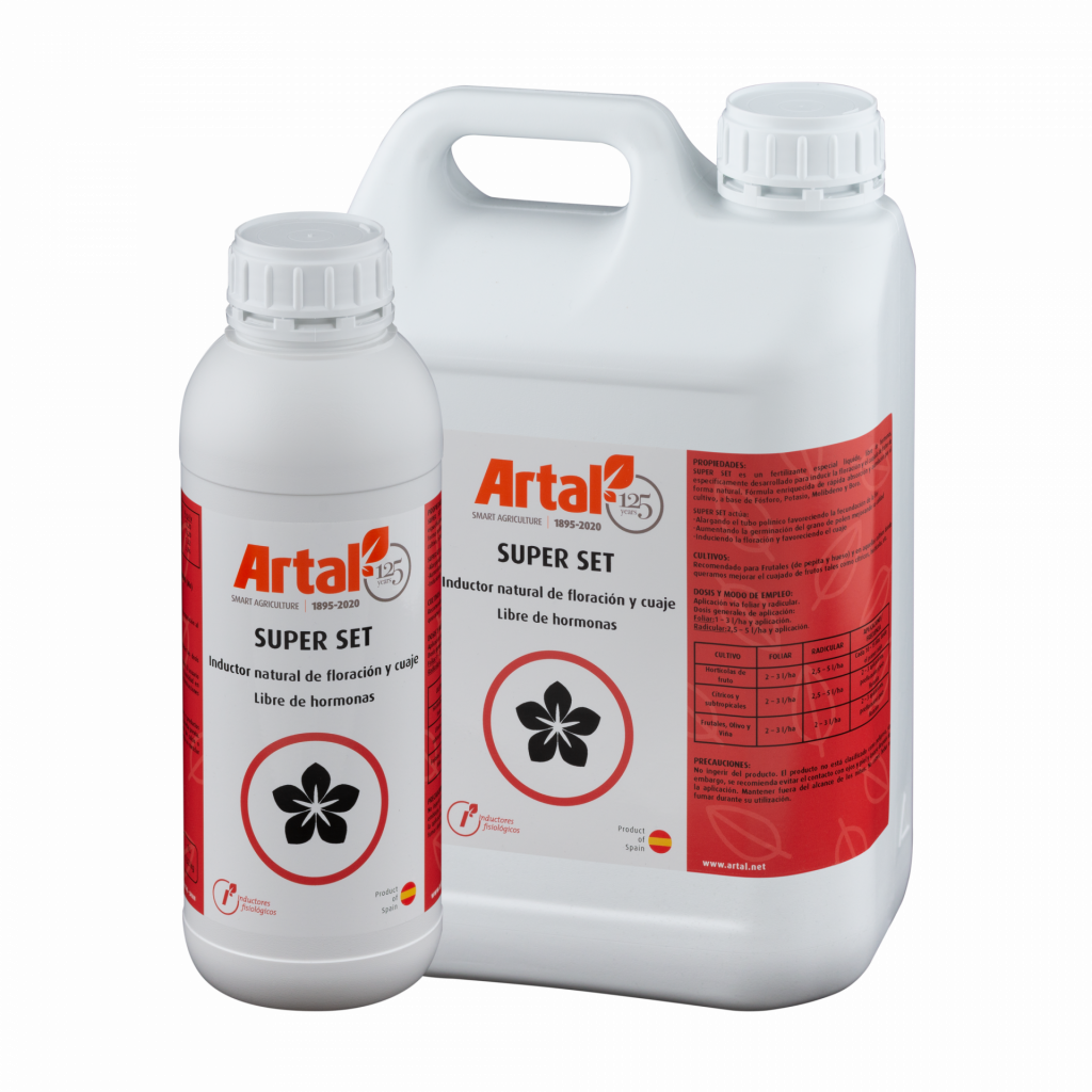SUPER SET es un fertilizante especial líquido, libre de hormonas, especialmente desarrollado para mejorar la floración y el cuajado de frutos de forma natural.